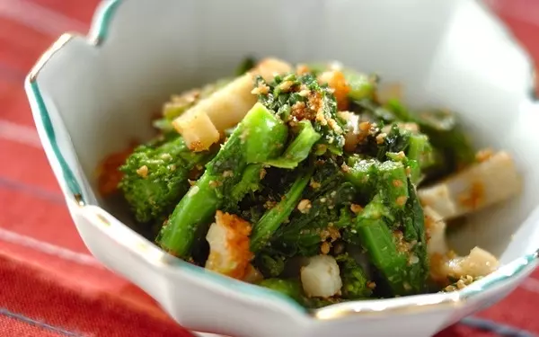 菜の花の苦みがアクセントの和え物。菜の花はゆですぎに注意!