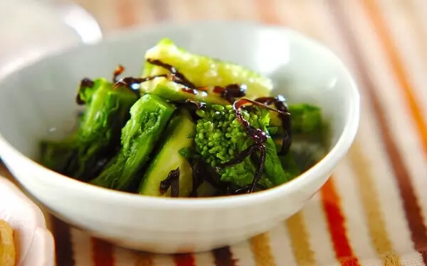 旨みの宝庫・塩昆布を活用した、失敗なしの即席和え物。昆布のしっかりとした塩味とコクが菜の花の個性を引き立てつつ、食べやすくまとめてくれます。サッと和えるだけで完成するので、あと1品欲しいときの救世主レシピとして覚えておくと便利です。