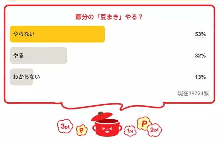 今日の質問は「「豆まき」やる?」さてみなさんの回答は…?