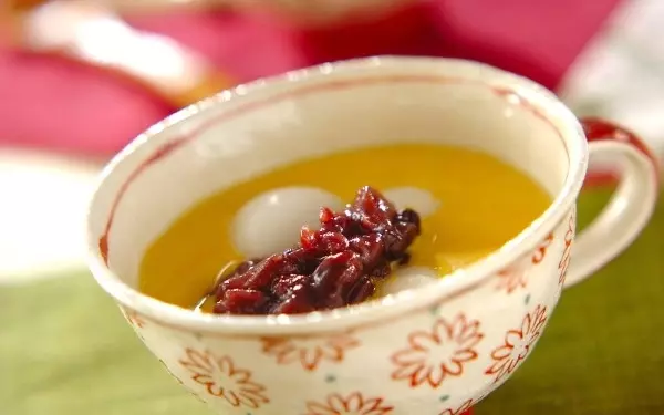 裏ごししたカボチャを牛乳とココナッツミルクで溶く、エスニック風のおしるこです。自然な甘みでホッと落ち着きますよ。白玉団子や小豆の相性の良さは言わずもがな。見た目も鮮やかで、和の甘味に新鮮さをプラスできますね。