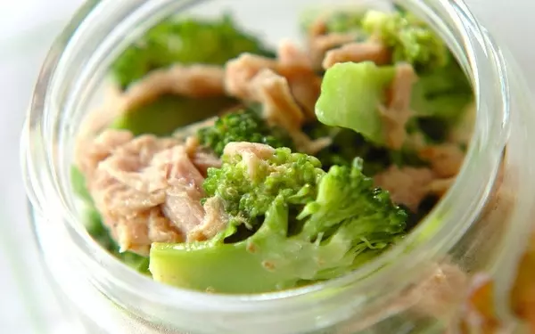 レンジ加熱でブロッコリーの栄養と甘みを閉じ込めた、時短サラダ。茹でる手間がなく、忙しい朝でもパパッと作れるのが魅力です。市販のゴマドレッシングにお任せの味つけなので失敗知らず。子どもが喜ぶ、クリーミーで食べやすい一品です。