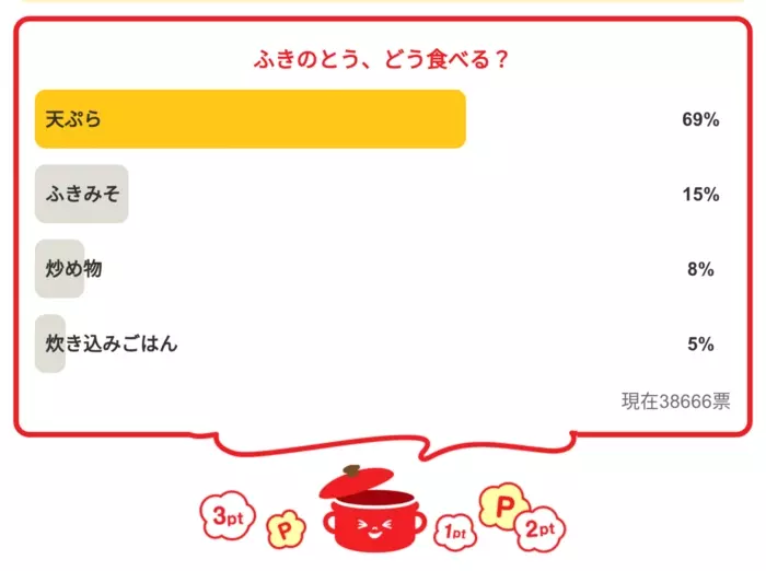 今日の質問は「ふきのとう、どう食べる?」さてみなさんの回答は…?