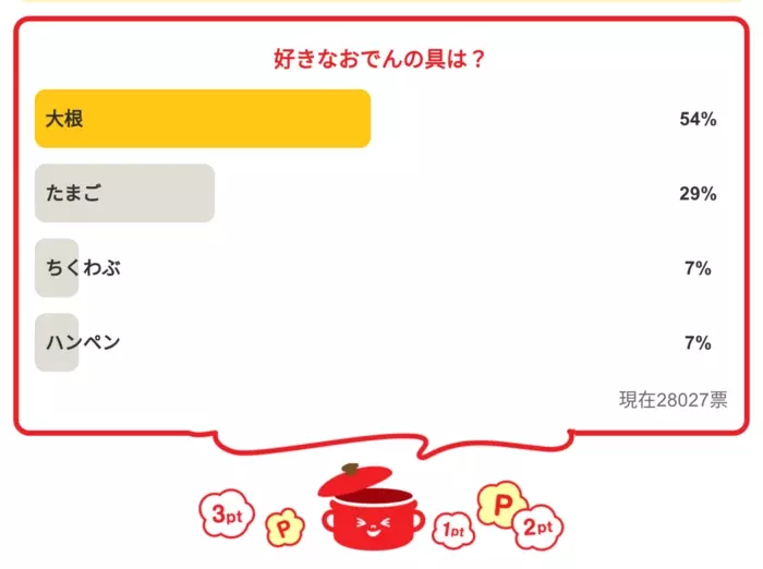 今日の質問は「好きなおでんの具は?」さてみなさんの回答は…?