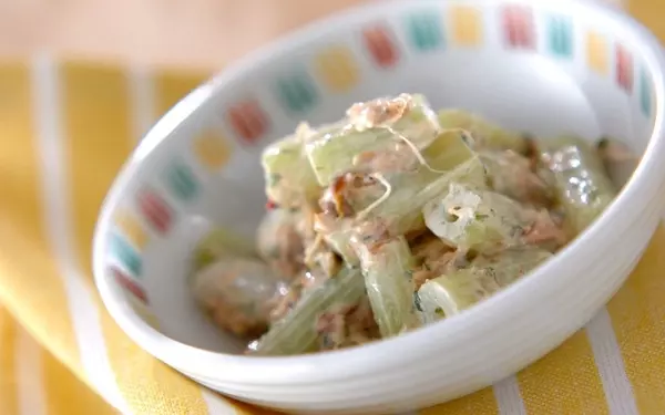梅干しの酸味とマヨネーズのコクが、フキの苦みをマイルドに包み込んでくれる意外な組み合わせ。大葉の爽やかな香りがアクセントになり、野菜が苦手な方でも箸が進むおいしさです。ツナを加えてボリュームを出したり、かつおぶしで見栄えをアップしたり、アレンジも自在です。