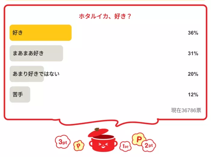 ・「ホタルイカ、好き?」の結果は…
