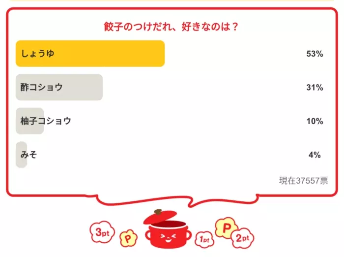 今日の質問は「餃子のつけだれ、好きなのは?」さてみなさんの回答は…?