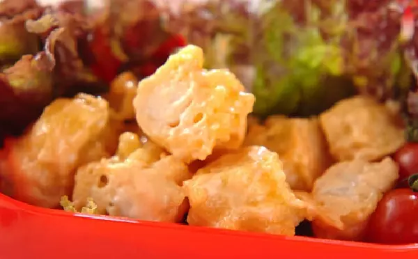 プリッと弾けるような食感と、コク深い味わいが魅力のエビマヨ。淡いピンク色がよく映え、お弁当やオードブルでも人気の定番メニューです。