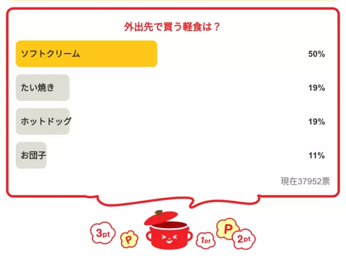 今日の質問は「外出先で買う軽食は?」さてみなさんの回答は…?