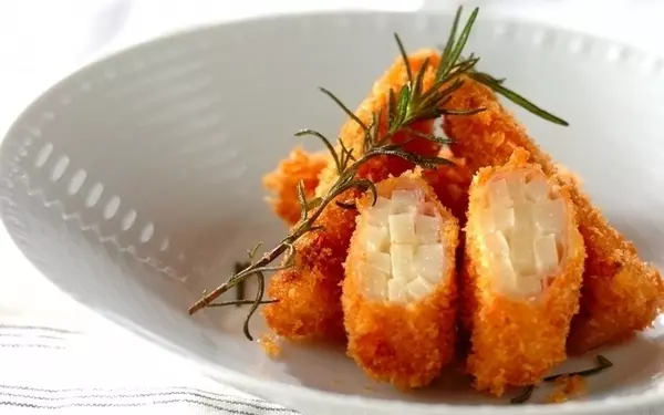 おしゃれな一皿を作りたいならこちら。茹でたタケノコを生ハムで巻いて揚げる、洋風のフライです。生ハムの塩気がタケノコのほのかな甘みを引き立て、ワインとの相性も抜群。パーティーのオードブルに出せば、「これ何?」と会話も弾みそうです。