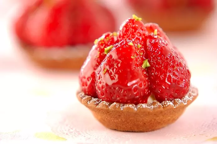 第2位は、宝石のようにキラキラ輝く「プチタルト」です。サクサクに焼き上げたタルト生地に、コク旨なカスタードクリームとみずみずしいイチゴが相性抜群!見た目もとってもおしゃれで、ティータイムのおもてなしにも喜ばれますよ。