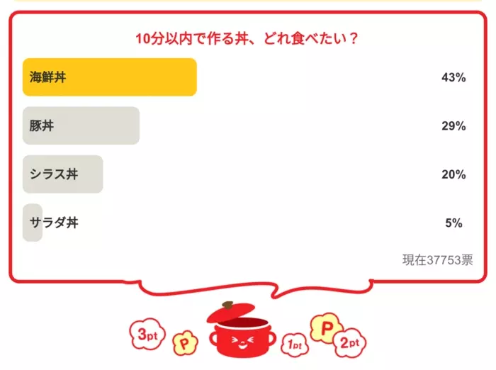 ・「10分以内で作る丼、どれ食べたい?」の結果は…