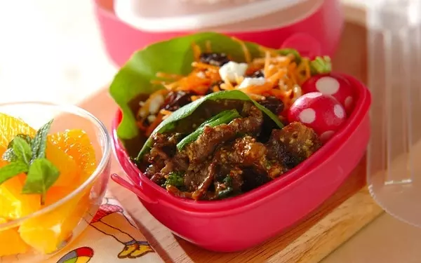 春のお弁当には、菜の花のほろ苦さを活かした牛肉の炒め物をメインに。粒マスタードとしょうゆで味付けすることで、ごはんにもパンにも合う「和洋のマリアージュ」が楽しめます。副菜のニンジンサラダは前日に作っておくと、朝の時間を有効活用できるだけでなく、味がしっかり馴染んでよりおいしくなりますよ。