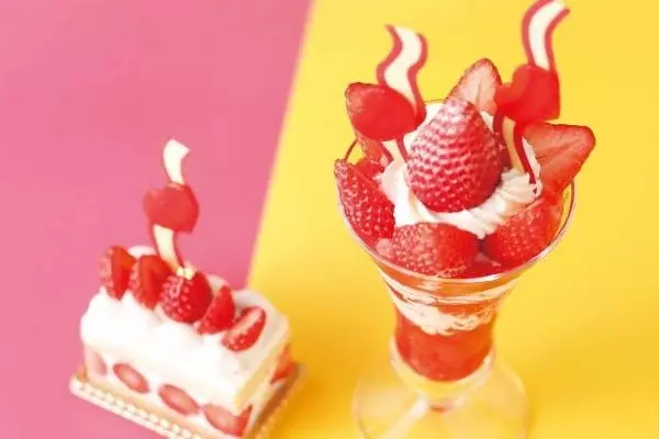 資生堂パーラー“ハート&波型”モチーフのストロベリーパフェやケーキ、仲條正義名作展とコラボ