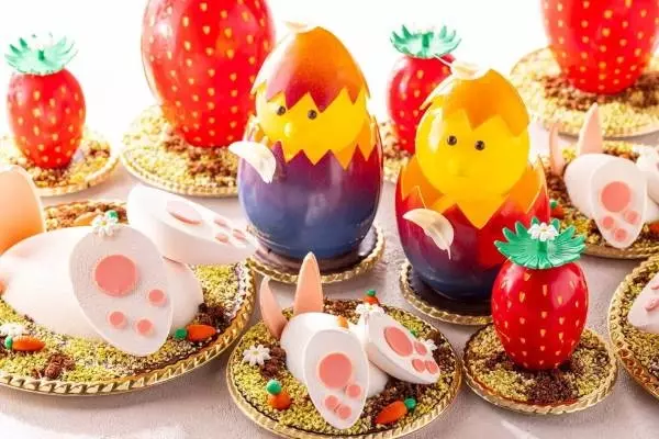 ヒルトン東京のイースターチョコスイーツ、卵から顔を出すヒヨコ&ピンクの肉球がキュートなウサギ