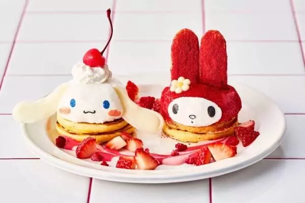 たとえばJ.S. パンケーキ カフェからは、ホイップクリームやチーズクリームなどで“マイメロディ&シナモロール”を立体的に表現した「マイメロディ シナモロールのいちごパンケーキ」がお目見え。周りにはフレッシュな苺を飾った、フォトジェニックなパンケーキプレートとなっている。