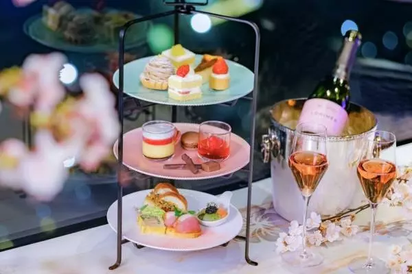 あまおう苺スイーツ×ロゼワインを夜景と楽しむ「夜桜ハイティー」ホテルニューオータニ大阪で