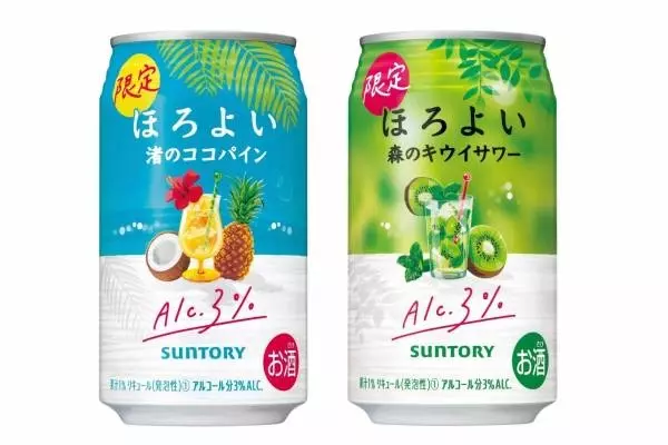 やさしい味わいで心地よく楽しめるアルコール度数3%のお酒として、幅広い世代で支持を集めているサントリーの「ほろよい」。2023年4月には、行楽シーズンにぴったりな爽やかな味わいの新フレーバー「ほろよい〈渚のココパイン〉」「ほろよい〈森のキウイサワー〉」の2種を展開する。