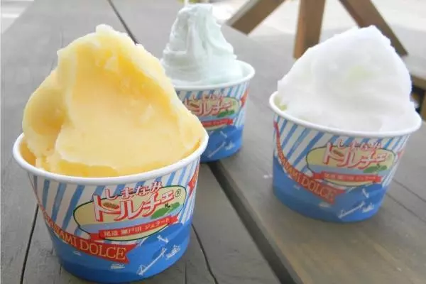 日本各地のアイスクリームには、ご当地食材を使用したアイスが勢ぞろい。沖縄県民のソウルフードである「ブルーシールアイスクリーム」をはじめ、瀬戸内海エリアの柑橘や伯方の塩を使って作られる「しまなみドルチェ」のジェラートや、北海道産の小麦を用いた“メガホン型”クレープ×ソフトクリームの「サンタチューボー!」のクレープなど、多彩なラインナップだ。