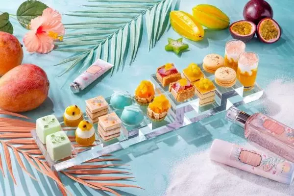 第1弾は、ジルスチュアートビューティーが6月16日(金)に発売する“マンゴー&パッション ホワイトフローラル”の香りをコンセプトにしたアフタヌーンティー「アーリーサマー・アフタヌーンティー インスパイアード by ジルスチュアート」を提案。マンゴーパッションタルトやピンクグレープフルーツマカロンなど、甘く熟れた南国の果実を思う存分楽しめるジューシーなスイーツがラインナップする。
