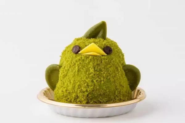 名古屋コーチンの卵を使用したプリンをはじめ、プリンを包むババロア、スポンジ、羽・トサカのチョコに至るまで、西尾の抹茶を使用することで、抹茶の上品な香りとコクをプラス。新緑のように深い緑に覆われた、爽やかな季節にぴったりのビジュアルにも注目だ。