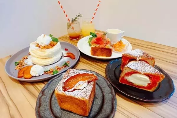 りんご&シナモンのふわふわパンケーキやドリンクも
