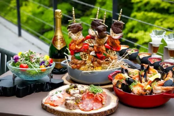 夏季限定「テンジンサマーテラスプラン」は地中海スタイルのグリル料理とシャンパン含むフリーフロー付きのプランを提供される。自然・芸術・料理を五感で堪能できるレストラン「テンジン」のオープンエアーなテラス席にて堪能できる。