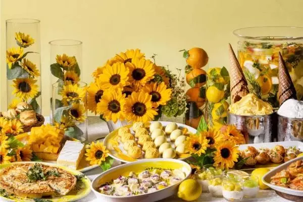 「サマー サンフラワー アフタヌーンティー」は、“ひまわり畑でのピクニック”をテーマにした夏季限定アフタヌーンティー。旬のフルーツを使用したビタミンカラーのスイーツや、フレンチの本格セイボリーを、ブッフェスタイルで好きなだけ楽しむことができる。