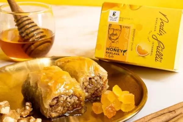 会場では、多種多様なはちみつスイーツを販売。たとえば「ナーディル・ギュル」からは、トルコ・イスタンブールのお菓子、ロール型バラクヴァが登場。銀座はちみつと相性の良いくるみをたっぷりと詰め込み、オレンジピールとシナモンを加え奥行きのある味わいに仕上げた。