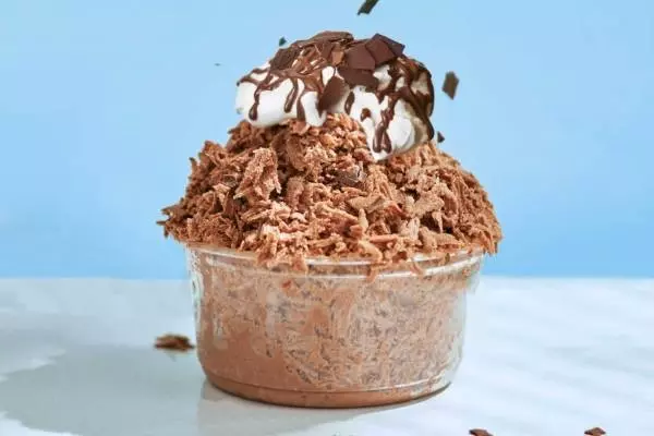 メゾンカカオの夏の定番「生かき氷」は、チョコレートの原料であり、スーパーフードとしても注目される“カカオニブ”をすりつぶした“カカオマス”を主役にしたかき氷。カカオの香りと味わいが凝縮されたカカオマスと牛乳を合わせたオリジナル氷を薄く削ることで、まるで冷たいチョコレートをそのまま頬張っているかのような濃厚な味わいを完成させた。