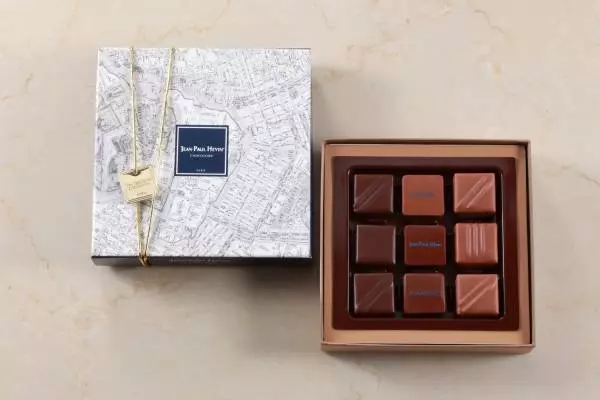 オープンを記念して、限定ショコラやスイーツを発売。白トリュフが香るガナッシュの「イノヴァシオン」や、繊細に香る海苔のプラリネをあしらった「プラリネ ノリ」といった日本橋三越本店限定ショコラ2種を含むボンボン ショコラの詰め合わせや、サクサクとした食感のサブレをミルクチョコレートやビターチョコレートのタブレットと組み合わせた「サブレ タブレット」は、日本橋周辺の古地図を描いた限定ボックスに収めて販売される。