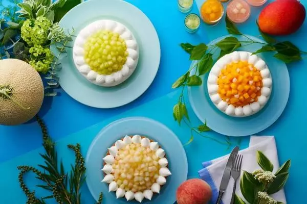 糖度14度以上を誇る静岡県南伊豆町のマスクメロンをたっぷり使用した「スーパーメロンショートケーキ」に、濃厚なアップルマンゴーの香りと味わいが魅力の「マンゴーショートケーキ」、ほどよい甘さと爽やかな酸味のバランスがちょうど良い「ストロベリーショートケーキ」も加わった3種類のショートケーキの食べ比べを、心行くまで堪能することができる。