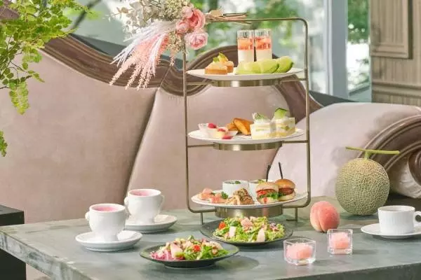 「ピーチ&メロン アフタヌーンティー」は、芳醇な甘みが広がる旬のピーチと、みずみずしいメロンをふんだんに使ったスイーツやセイボリーを味わえる夏限定のアフタヌーンティー。