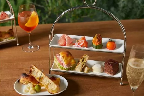 「アリビアーモ リバーサイド テラス」では、スターバックスが手掛けるイタリアンベーカリー・プリンチとアリビアーモ バーがコラボレーションした「ロースタリー ピアッティーニ フライト」を提供。プレートには、ズッキーニのグリルなどセイボリー6種とドルチェ2種、フォカッチャ3種が並ぶ。