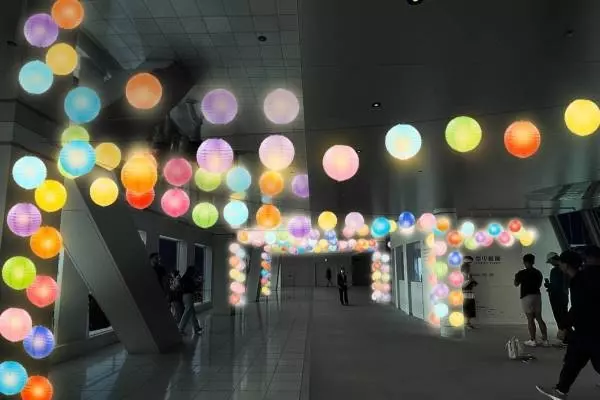 地上173mの空中庭園展望台に、カラフルなランタンが出現。期間中、展望フロアを約170個のランタンで彩り、日中は真っ白な空間に映える色とりどりのランタンを楽しむことができる。