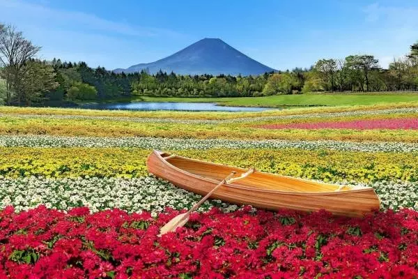 花畑には、ユニークなフォトスポットが登場。花畑に浮かぶ「虹色の海を旅する小舟」や、扉を開けると向こう側に富士山と花畑が広がる「幸せの黄色い扉」が出現し、フォトジェニックな写真を撮ることができる。また、「虹色のサークルベンチ」も設置される。