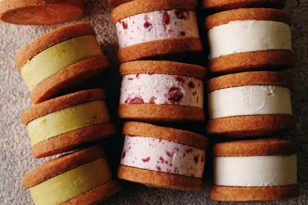 生まれ変わったペストリーショップ「スイーツ&デリ」で早速チェックしたいスイーツを紹介。中でも目を引くのは、チーズバタークリームをたっぷりとクッキーに挟んだ「チーズバタークリームサンド」だ。厚みのあるクッキー生地のさくっとした食感と、濃厚なクリームが相性抜群。フレーバーは、プレーン、フランボワーズ、ピスタチオの3種を用意する。