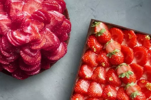 中でも注目は、サクサクのタルト生地の上に糖度が極めて高くジューシーな味わいの希少な“黒”いちご「真紅の美鈴」を花びらのように並べた「プレミアム黒いちごのタルト」。ピスタチオのタルト、スポンジと合わせ、苺の風味を存分に感じられる上品な味わいに仕上げた。