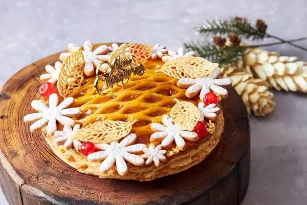 中でも注目は、2023年で開業70周年を迎える高輪エリアのプリンスホテルで受け継がれる伝統のアップルパイを、クリスマスリース風にアレンジした「リース アップルパイ」だ。花をイメージしたジンジャークッキーなどを飾り付け、華やかな見た目に仕上げている。ごろっとしたりんご、バターやシナモンの風味豊かな味わいもポイントだ。