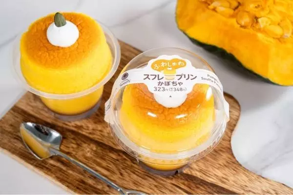 ファミリーマート「スフレ・プリン かぼちゃ」“ふわしゅわ”スフレ×ねっとり濃厚かぼちゃプリン