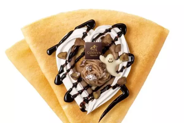 ゴディバ“まるでモンブランケーキ”な秋限定クレープ、栗カスタード×チョコソースにダイス状マロン入り