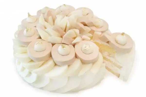 ミルクティームースとふわふわのスポンジ、生クリームを合わせ、華やかな見た目に。洋梨と紅茶の絶妙なハーモニーを楽しめる1品に仕上げた。