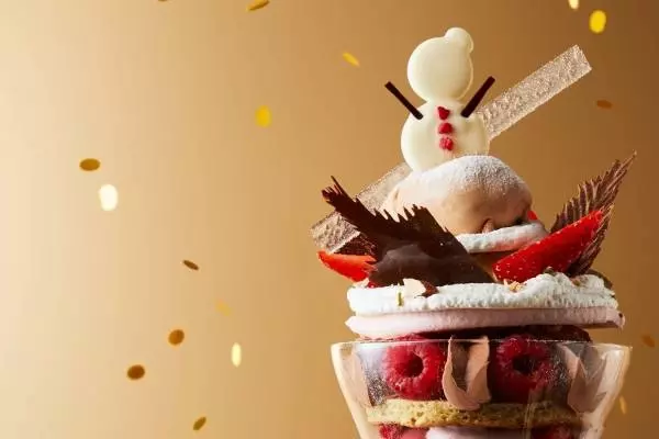 まるでスノーマンがお出迎えしているかのような見た目が愛らしい「パフェパレドオール イヴェール」は、いちご、ラズベリー、カシスの味わいを閉じ込めた3種のベリーを楽しめるチョコレートパフェだ。濃厚な自家製ビターチョコレートをふんだんに使用し、キャラメルアイスクリームや酸味のあるベリーシャーベットがアクセントに。東京と大阪の店舗でしか味わえない冬限定パフェとなっている。