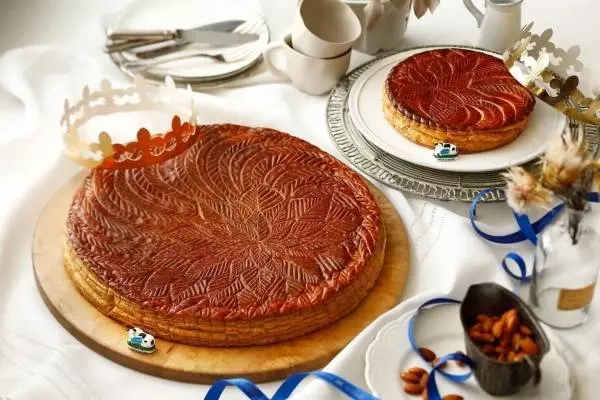 「ガレット・デ・ロワ」は、フランスで新年のお祝いに欠かせない伝統菓子。紙の王冠が乗ったパイの中には、フェーヴと呼ばれる小さな陶器が隠されており、取り分けた際にこれを当てた人は、その日一日「王様」「王女様」として皆から祝福され、幸せな一年になるとされている。