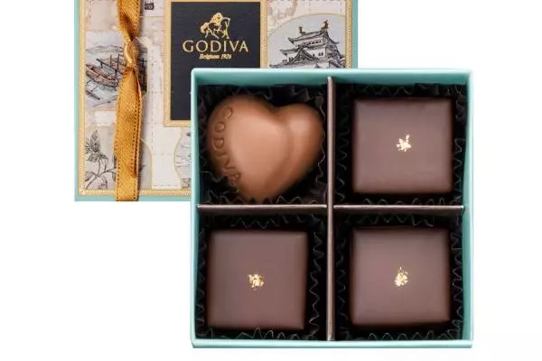 ジェイアール名古屋タカシマヤ限定の「ゴディバカカオジャーニー 名古屋オリジナルアソートメント 4粒入」は、名古屋の味噌文化を支えてきた「つけてみそかけてみそ」を使用した限定チョコレートと、ハート形のチョコレート「クール」を、名古屋城を描いた特別パッケージに詰め合わせた特別なアソートメントだ。