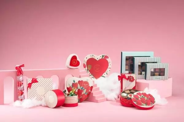 2024年バレンタインは“LOVE IN EVERY BITE”がテーマ。春の訪れを感じる柔らかなベビーピンクをベースに、真っ赤なハートを散りばめたデザインのスカーレットコレクションなどが揃う。