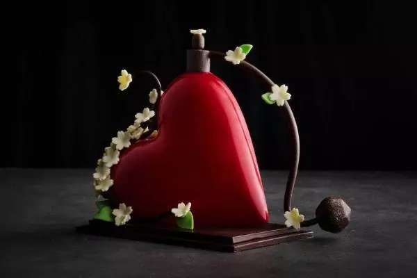 “香水ボトル”イメージの真っ赤なハート型チョコレート