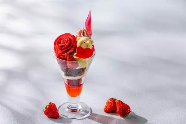 シャングリ・ラ 東京“ホワイトチョコのベア&バラ”の「ストロベリーパフェ」旬のいちごを堪能