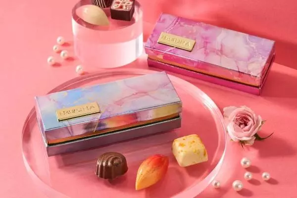 ゴンチャロフ“香りを楽しむ”24年バレンタインチョコ、冬の夜空や雨上がりの虹着想マーブル柄BOXで