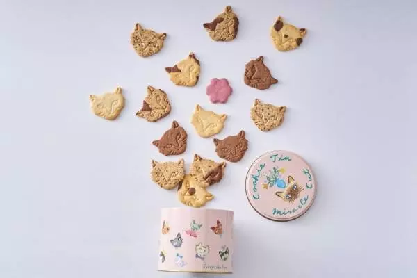 春限定缶の中には、発酵バターやカカオ、チョコチップを使って焼き上げた、1匹ずつ模様の異なるネコクッキーをアソート。甘酸っぱいラズベリーのアイシングを施した花の形のクッキーも加え、春を感じるチャーミングなクッキー缶に仕上げている。