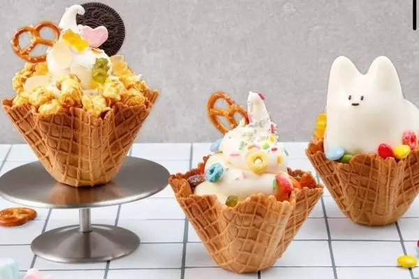 “未だ”世に出ていない渋谷発のオリジナルフードを発信する「イマダ キッチン」は、トッピングで自分好みにカスタマイズできるオリジナルソフトクリーム「ハッピーデコソフト」を展開。「ぷるぷる猫プリンソフト」と「デコソフト」の2種類を用意する。